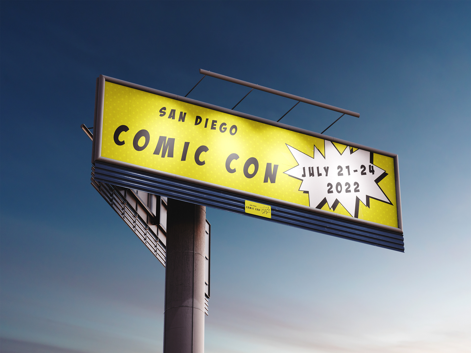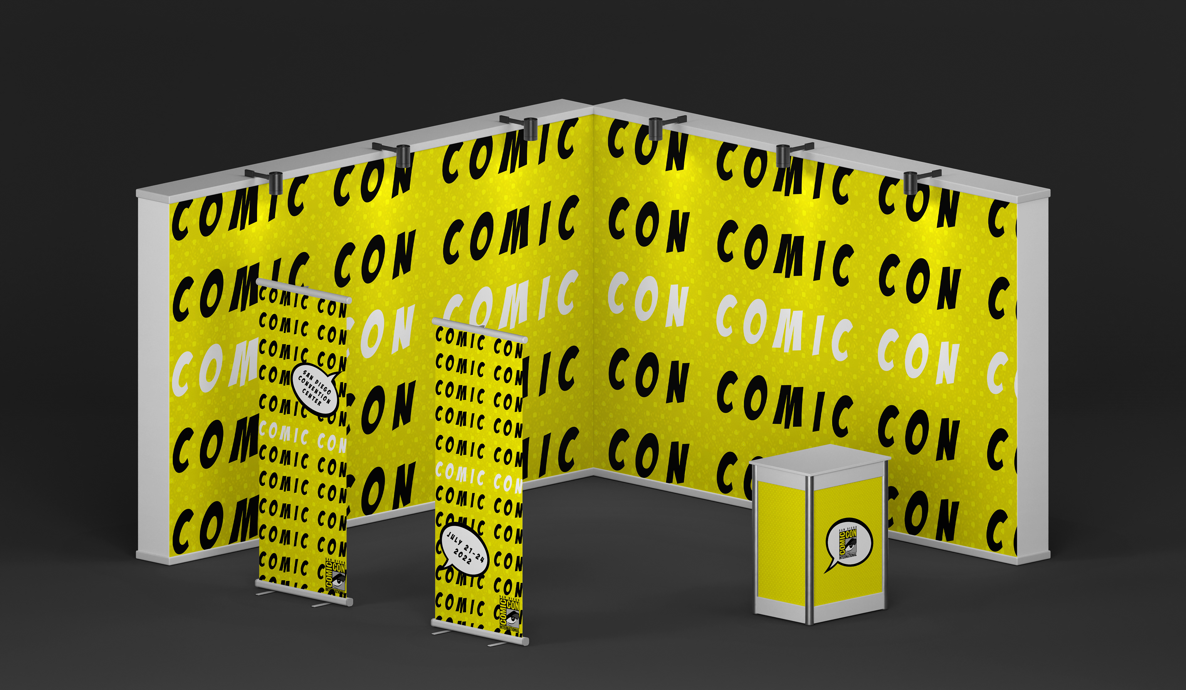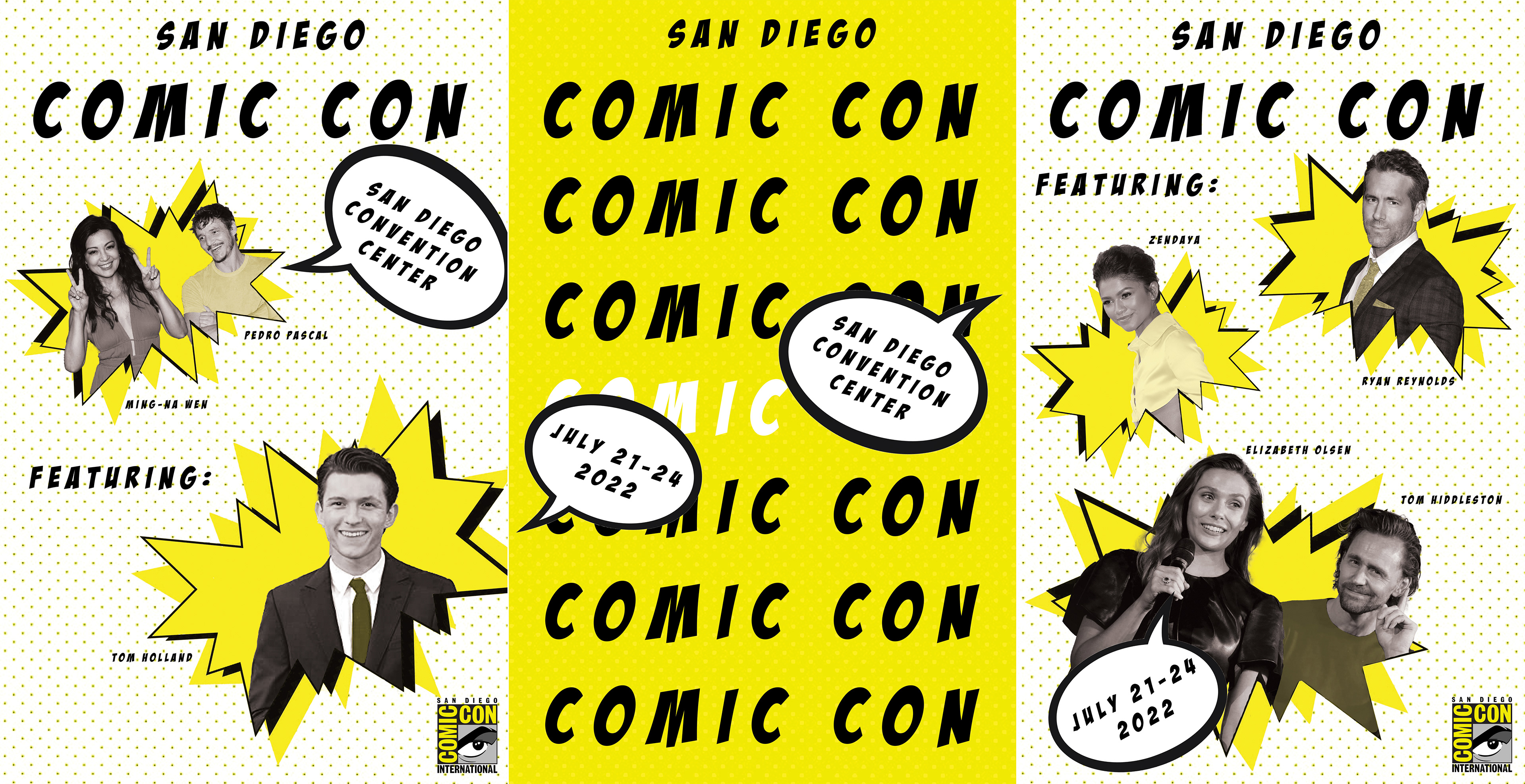 For this project, I created a series of three posters, along with promotional merchandise for San Diego Comic Con. I wanted to use half-tone dots since that is what comes to mind when I think of comics!